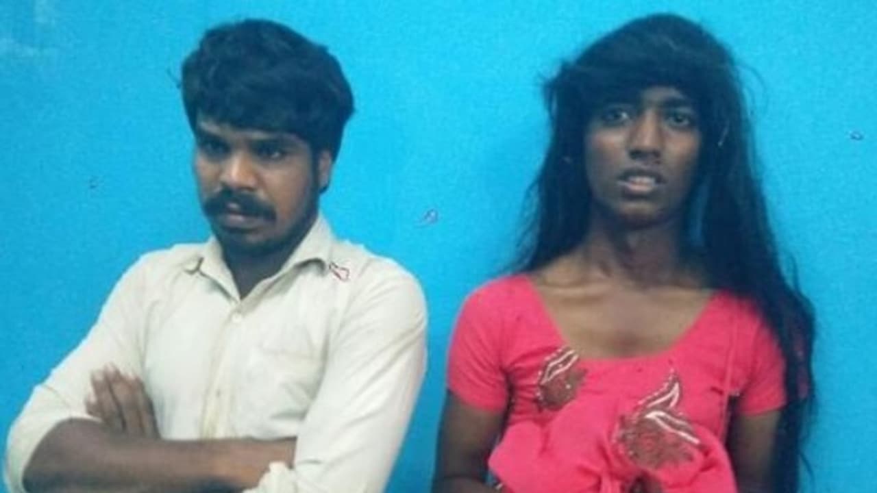 மனைவி என்று கூறிக் கொண்டிருந்தவர், துப்பாட்டாவில் வாய் பகுதியை மூடிக் கொண்டிருந்தார். திடீரென துப்பட்டா விலகியதால், அவர் பெண் வேடத்தில் இருந்த ஆண்