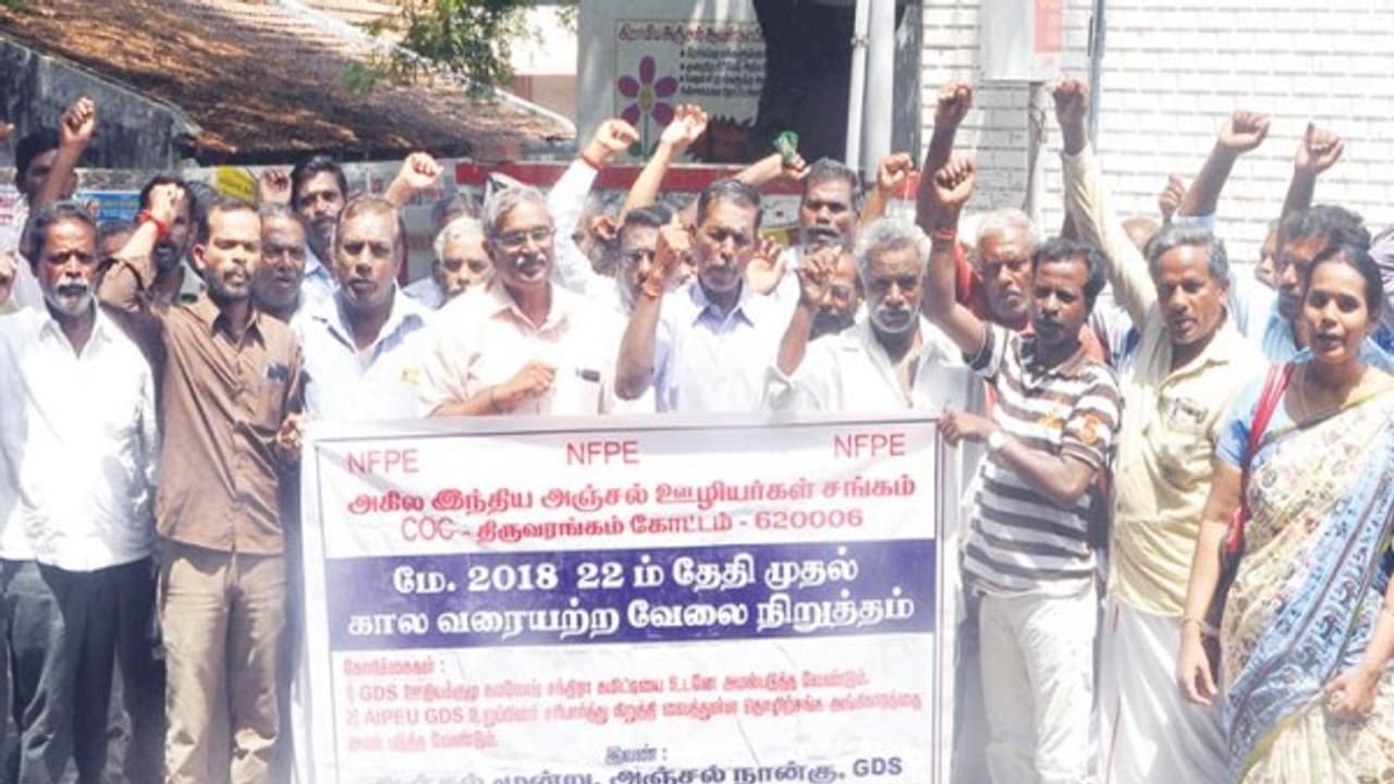 Indefinite strike by postal workers in Perambalur The demonstration ...