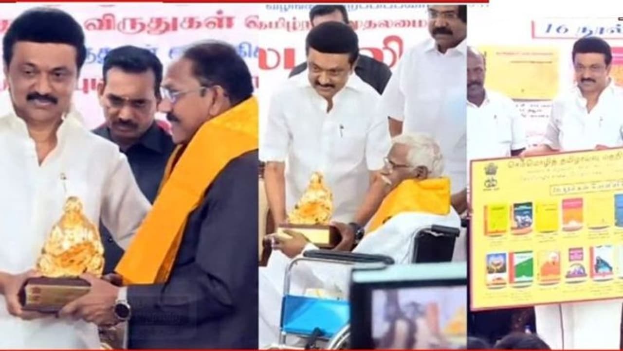 இலக்கிய மாமணி என்ற விருது மூலம் 5 லட்சம் ரூபாயை முதல்வர் முக ஸ்டாலின் அறிவித்து, அதே வேகத்தில் வழங்கியுள்ளார். சாகித்ய அகாதமி விருது பெற்ற தமிழ் எழுத்தாளர்களுக்கு வீடுகளை வழங்கியிருக்கிறார். வெளிநாடுகளில் உள்ளவர்கள் தமிழ் கற்க 'தமிழ் பரப்புரைக் கழகத்தை' நிறுவி அதற்கான பாடத்திட்டங்களை வெளியிட்டுள்ளார். மறைந்த தமிழ் அறிஞர்களுக்கு அரசு மரியாதையை ஏற்படுத்தி தந்துள்ளார்.