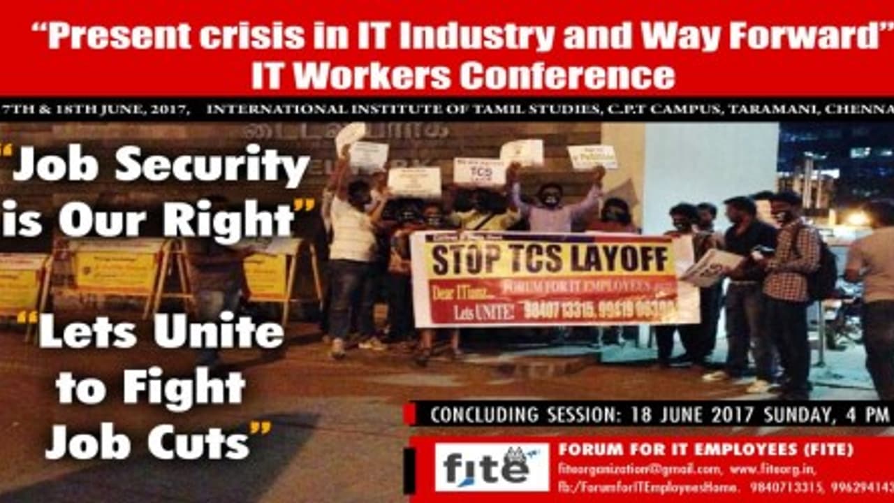 இந்தப் பின்னணியில் ஐ.டி. துறை சந்திக்கின்ற பிரச்சனைப் பற்றி ஆழமாக விவாதிக்கவும் ஐ.டி. துறை ஊழியர்களுக்கான கோரிக்கைகளை வந்தடையவும் ஜூன் 17,18 ஆகிய தேதிகளில் சென்னையில் ஐ.டி. தொழிலாளர்கள் மாநாட்டை நடத்தவிருக்கிறோம்.