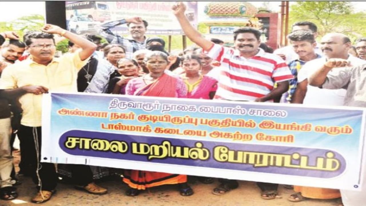 திருவாரூர் - நாகை பைபாஸ் சாலையில் மதுரா நகர், கலைஞர் நகர், அண்ணா நகர் ஆகிய பகுதிகள் இருக்கின்றன. இந்த பகுதிகளின் மத்தியில் டாஸ்மாக் மதுக்கடை ஒன்று செயல்படுகிறது. இதனால் இந்த பகுதியில் வசிக்கும் சிறுமியர், பெண்கள் என அனைவரும் பெரிதும் பாதிக்கப்படுகின்றனர்.