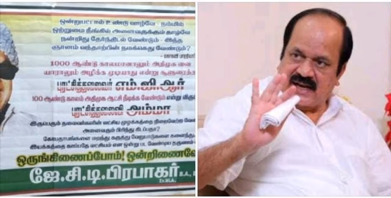 என்ற பாரதியாரின் பாடலை சுட்டிக்காட்டி ஓ பன்னீர்செல்வம் ஆதரவாளர் ஜே சி டி பிரபாகர் சென்னையில் பல இடங்களில் போஸ்டர் ஒட்டியுள்ளார். அவர் ஒட்டியுள்ள போஸ்டரில், ஆயிரம் ஆண்டு காலம் ஆனாலும் அதிமுகவை யாராலும் அழிக்க முடியாது என சூளுரைத்த எம்ஜிஆர், 100 ஆண்டு காலம் அதிமுக ஆட்சி நீடிக்க வேண்டும் என விரும்பிய ஜெயலலிதா, இருபெரும் தலைவர்களின் லட்சிய முழக்கத்தை நிறைவேற்ற வேண்டிய அனைவரும் பிரிந்து கிடப்பதா? கோபதாபங்களை மறந்து, கருத்து வேறுபாடுகளை களைந்து இயக்கத்தை காப்பதே லட்சியம் என ஒன்றுபட வேண்டிய தருணம் இது ஒருங்கிணைப்போம் ஒன்றிணைவோம் என ஜேசிடி பிரபாகர் போஸ்டர் ஒட்டியுள்ளார்.
