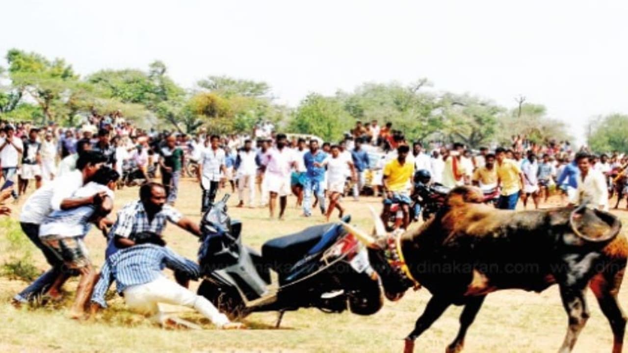 தைப்பூசம் திருவிழாவை ஒட்டி நடைப்பெற்ற மஞ்சுவிரட்டில் கலந்து கொண்ட காளையர்களை, காளைகள் தூக்கி வீசி ஒரு கை பார்த்தன.