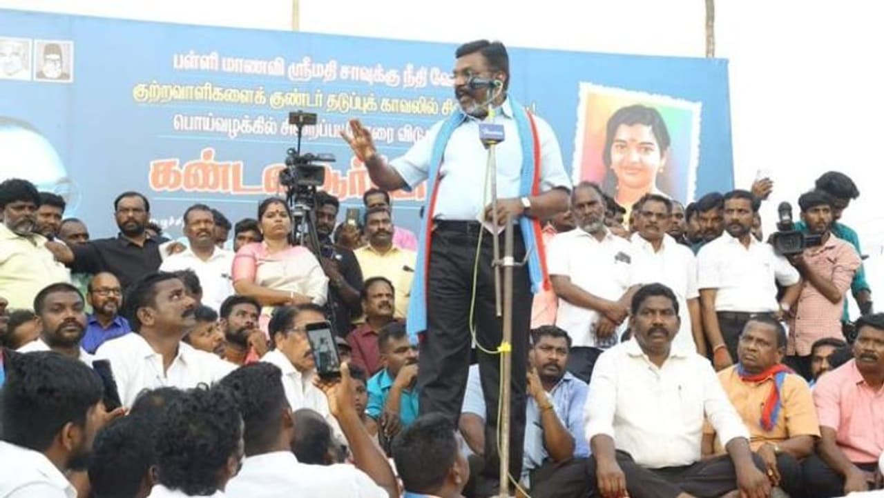 இது தொடர்பாக உயர் நீதிமன்றத்திலும் வழக்கு தொடரப்பட்டிருந்தது . விடுதலைச் சிறுத்தைகள் கட்சி சார்பில் கள்ளக்குறிச்சியில் கண்டன ஆர்ப்பாட்டம் நடைபெற்றது. இதில் திருமாவளவன் கலந்து கொண்டு பேசினார். அப்போது, 'விடுதலை சிறுத்தைகள் சாதியின் அடிப்படையில் பார்க்காமல், நீதியின் அடிப்படையில் போராடக் கூடிய கட்சி. யாருக்கு பிரச்சினை என்றாலும் குரல் கொடுக்கும் கட்சி விடுதலைச் சிறுத்தைகள்.