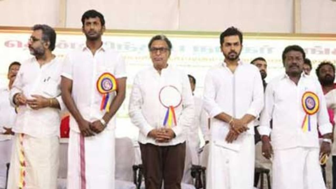 சென்னையில் 64-வது தென்னிந்திய நடிகர் சங்க பொதுக்குழுக் கூட்டம் நடைபெற்று வருகிறது. இந்த கூட்டத்தில் நடிகர் சங்க தலைவர் நாசர், செயலாளர் விஷால், பொருளாளர் கார்த்தி, சங்க உறுப்பினர்கள், முன்னணி நடிகர் - நடிகைகள் பலர் கலந்து கொண்டனர்.