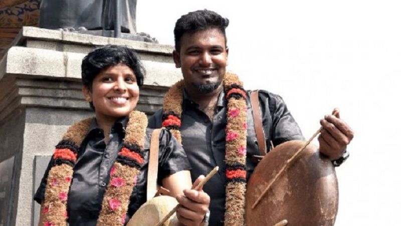 நீங்க ஷார்ப்பான ஆளுன்னா, இந்நேரம் கண்டுபிடிச்சிருப்பீங்க, இது உடுமலைப்பேட்டை கவுசல்யா - சக்தி திருமணம்தான்னு. யெஸ்! அதேதான். ஆணவ படுகொலை செய்யப்பட்ட சங்கரின் மனைவி கவுசல்யா, சக்தி எனும் பறையிசை கலைஞரை சமீபத்தில் திருமணம் செய்தார். பகுத்தறிவு தலைவர்கள் சிலர் இதை முன்னின்று நடத்தி வைத்தனர்.
