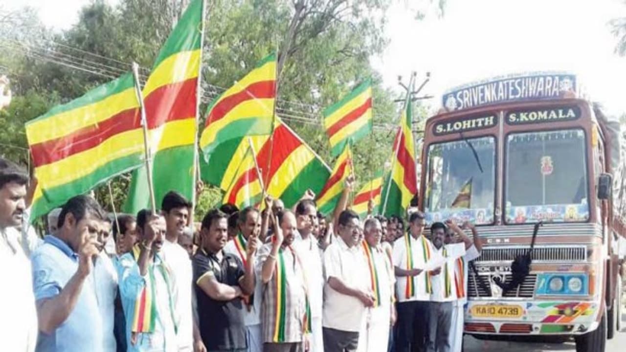 அப்போது, அந்த வழியாக கர்நாடகத்தில் இருந்து அந்த மாநில பதிவெண் கொண்ட லாரி, மக்காச்சோள பாரம் ஏற்றிக்கொண்டு ஈரோட்டுக்கு வந்துக் கொண்டிருந்தது. இந்த லாரியை கொ.ம.தே.க.வினர் தடுத்து நிறுத்தி சிறைபிடித்ததால் அங்கு பரபரப்பு ஏற்பட்டது.