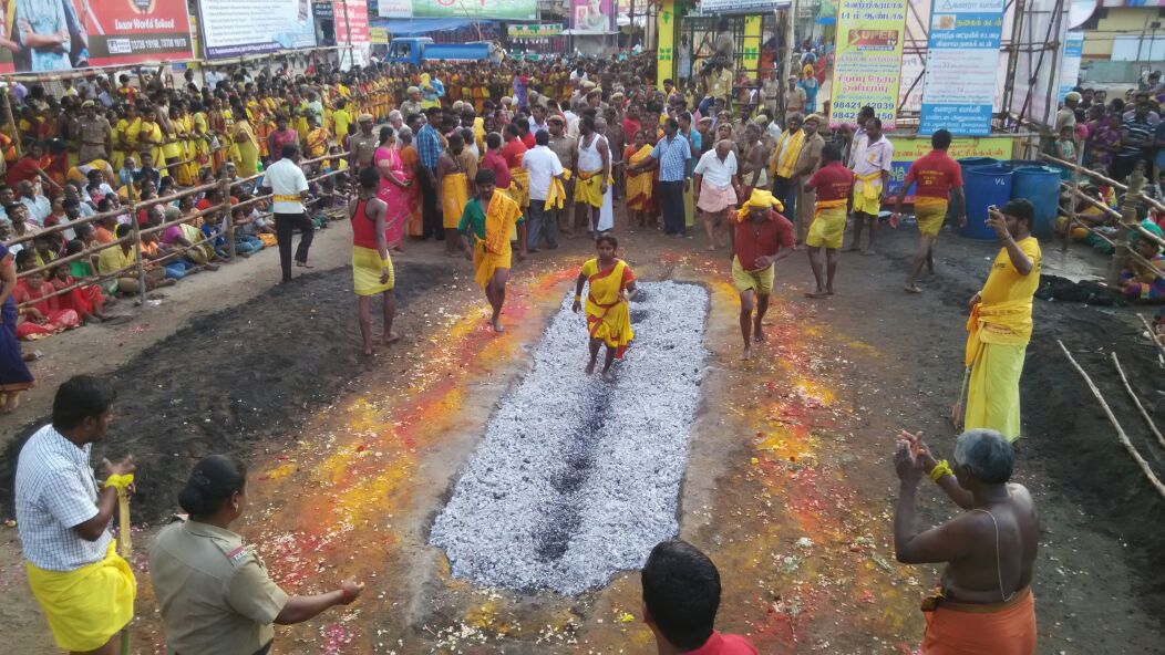 திண்டுக்கல் மாவட்டம் கோட்டை மாரியம்மன் கோவிலில் பூக்குழி இறங்க 2500-க்கும் மேற்பட்ட அடியார்கள் கூடினர். அவர்களில் நகைகள் அணிந்து வந்தவர்களுக்கு காவல்துறையினர் சேஃப்டி பின் வழங்கி பாதுகாப்பு அளித்தனர்.