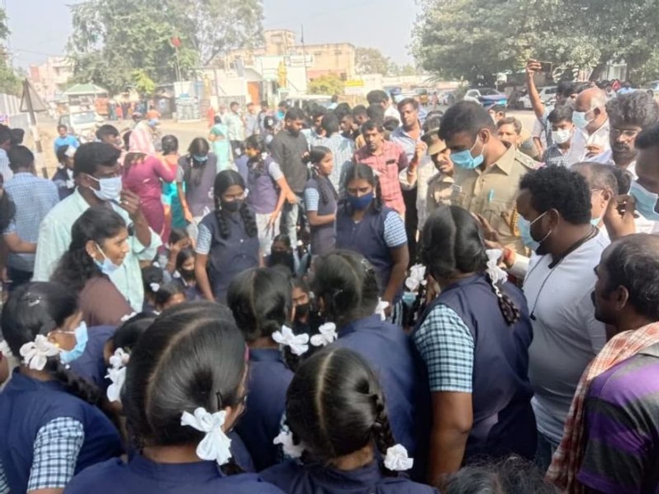 இதுகுறித்து பாதிக்கப்பட்ட மாணவிகள் தலைமை ஆசிரியரிடம் புகார் அளித்ததாகவும் கூறப்படுகிறது. அவரும் ஒரு வாரத்திற்கு முன்பு மாவட்ட முதன்மை கல்வி அலுவலரிடம் இப்பிரச்னை தொடர்பாக தெரிவித்துள்ளதாக தெரிகிறது. ஆனால், இதுவரை குற்றம்சாட்டப்பட்ட ஆசிரியர் மீது எந்தவொரு நடவடிக்கை எடுக்கப்படவில்லை எனக்கூறிய மாணவ, மாணவிகள் ஆசிரியரை மீது நடவடிக்கை எடுக்க வலியுறுத்தி பள்ளி முன்பு சாலையில் அமர்ந்து ஆர்ப்பாட்டத்தில் ஈடுபட்டனர்.
