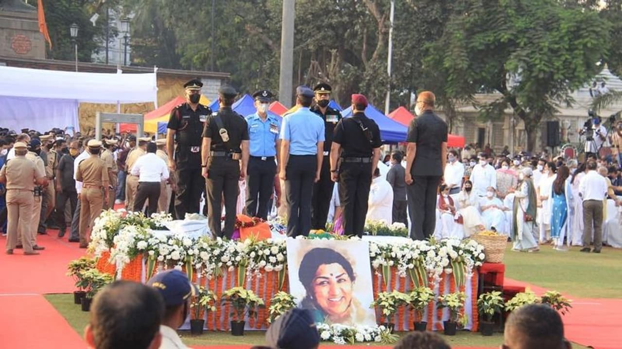 மும்பை சிவாஜி பூங்காவில் பழம்பெரும் பின்னணி பாடகி லதா மங்கேஷ்கர் உடல் முழு அரசு மரியாதையுடன் தகனம் செய்யப்பட்டது. முன்னதாக முப்படை மற்றும் மகாராஷ்டிரா காவல் துறை சார்பில் இறுதி மரியாதை செலுத்தப்பட்டது.