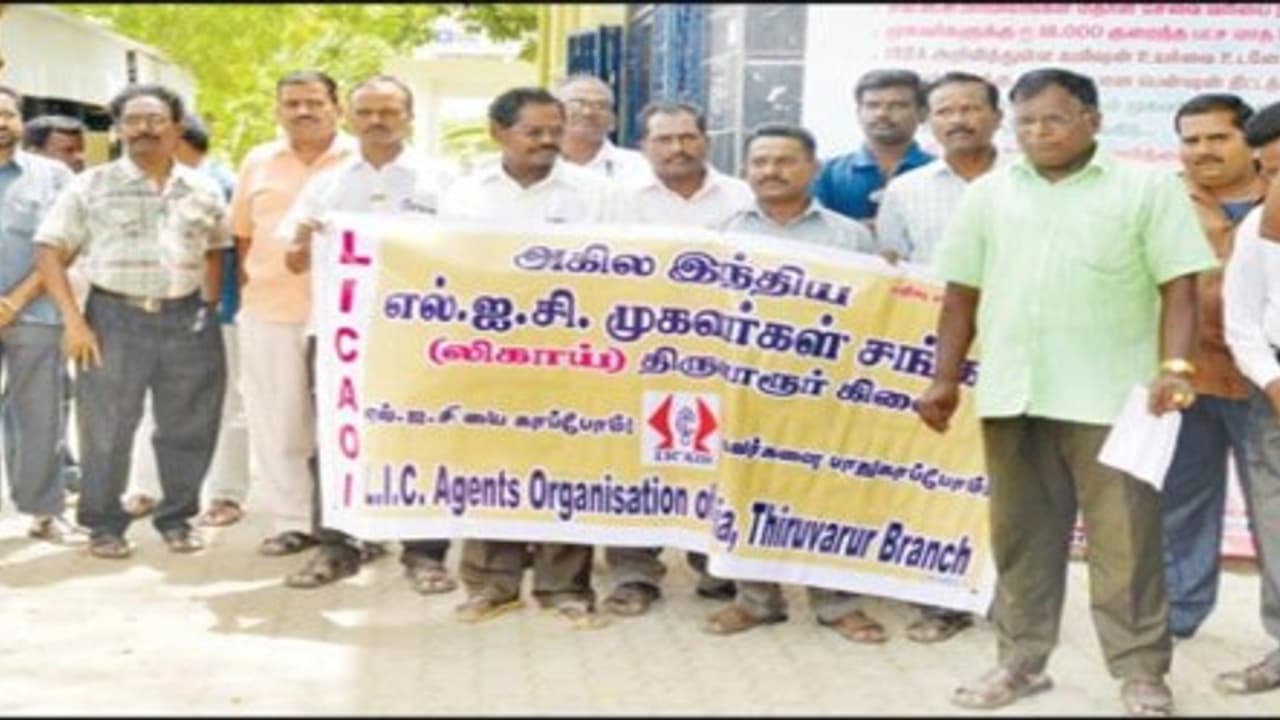 திருவாரூர் எல்.ஐ.சி. அலுவலகம் முன்பு அகில இந்திய எல்.ஐ.சி. முகவர்கள் சங்கத்தினர் ஆர்ப்பாட்டத்தில் ஈடுபட்டனர்.