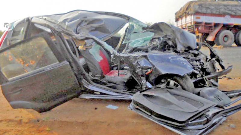 பாப்பிரெட்டிப்பட்டி பகுதியில் சென்றுக் கொண்டிருந்தபோது கார் மீது எதிரே வந்த லாரி வேகமாக மோதியது. இதில் கார் அப்பளம்போல நொருங்கியது. காரில் சென்ற அனைவரும் பலத்த காயம் அடைந்தனர்.
