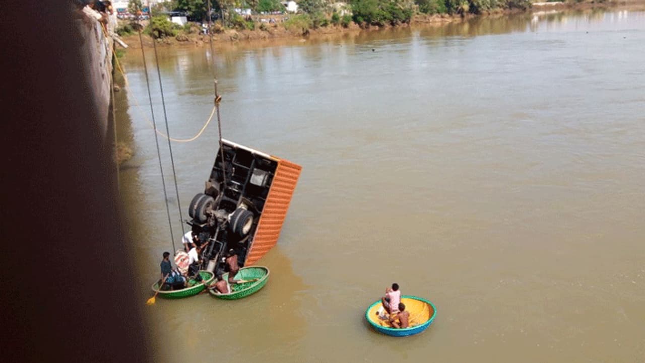 கோவையில் இருந்து சரக்கு ஏற்றிச் சென்ற லாரி காவிரி ஆற்றில் கவிழ்ந்து விபத்துக்குள்ளானது. இன்று அதிகாலை நாமக்கல் மாவட்டம் குமாரபாளையம் அருகே காவிரி ஆற்று பாலத்தில் லாரி வந்து கொண்டிருந்த கட்டுப்பாட்டை இழந்து 23-வது பக்கவாட்டு தூணை உடைத்துக் கொண்டு ஆற்றுக்குள் பாய்ந்தது.