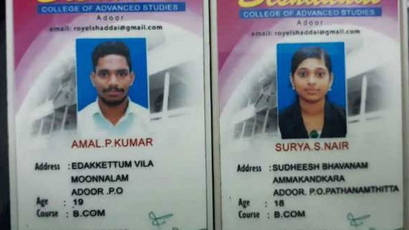 கேரள மாநிலம் பத்தனம்திட்டா அடூரை சேர்ந்த அமல்குமார் என்பவரும், அதேப்பகுதியை சேர்ந்த சூர்யா நாயர் என்ற பெண்ணும் தனியார் கல்லூரியில் பயின்று வந்துள்ளனர். இவர்கள் இருவரும் கடந்த 5 வருடங்களாக காதலித்து வந்ததாக கூறப்படுகிறது. ஆனால் இவர்களது பெற்றோர்கள் தரப்பில் எதிர்ப்பு தெரிவித்துள்ளனர். இதனால் மனமுடைந்து காணப்பட்டனர்.