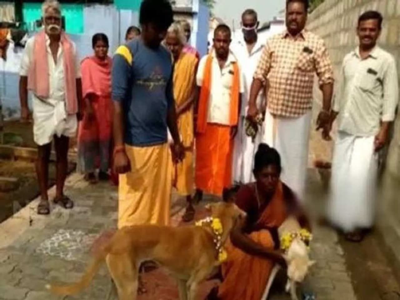 இதே போல் நெல்லை மாவட்டம் பிராஞ்சேரி பகுதியில் உள்ள இந்து அமைப்பினர் சிலர் காதலர் தினத்துக்கு எதிர்ப்பு தெரிவித்து சாலையில் கூடினர். பின்னர் கடிக்காமல் இருக்கும் இரு நாய்களை பிடித்து அதன் கழுத்தில் மாலை போட்டு திருமணம் செய்து வைப்பதாக கூறி வீடியோ வெளியிட்டுள்ளனர். அது தொடர்பான வீடியோக்களும், புகைப்படங்களும் சமூக ஊடகங்களில் வைரலாகி வருகிறது.