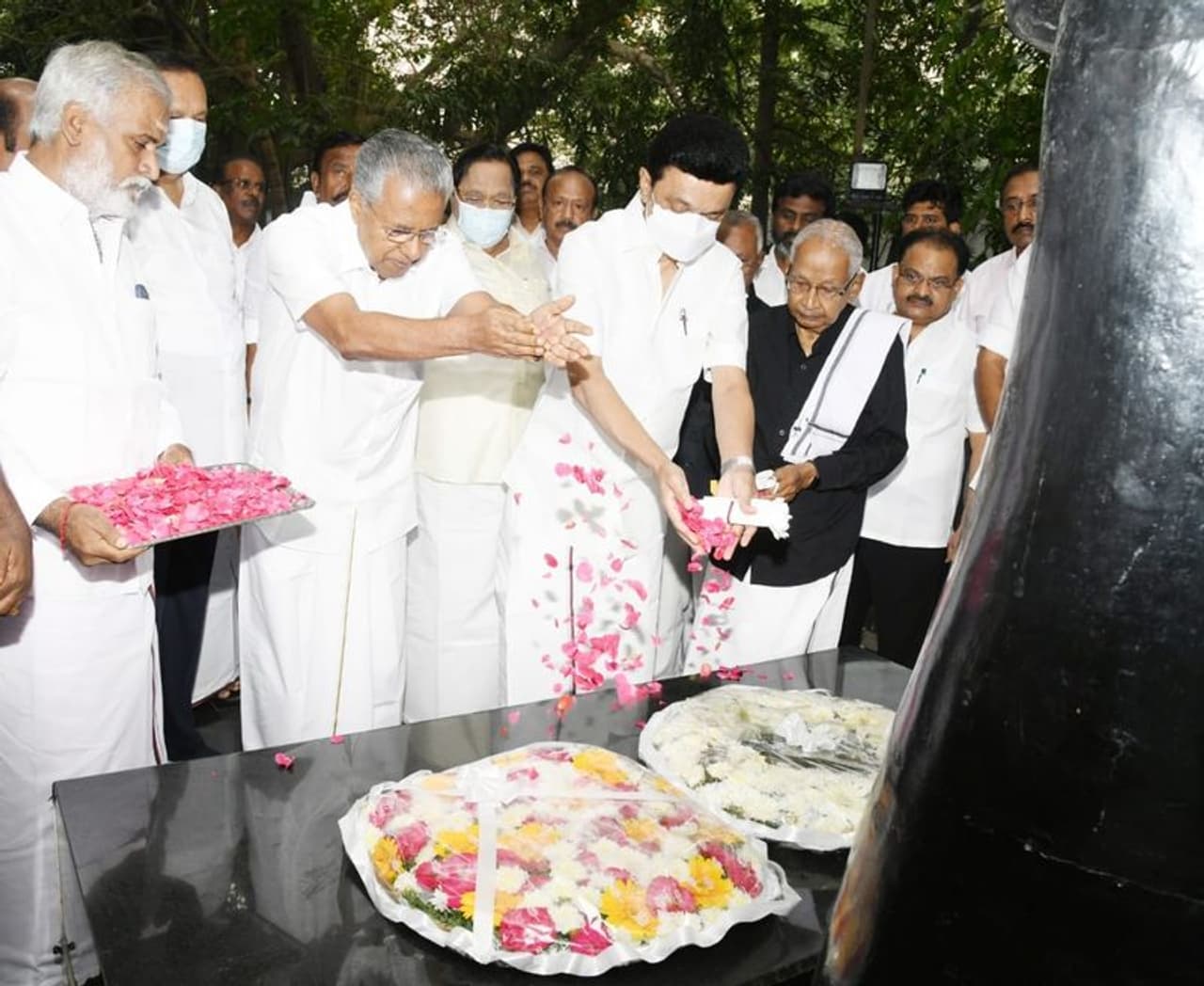 வைக்கம் போராட்டம் (1924-2023) நூற்றாண்டு மலரினை" வெளியிட தமிழக முதலமைச்சர் வெளியிட கேரளா மாநில முதலமைச்சர் பினராயி விஜயன் பெற்றுக்கொண்டார்.