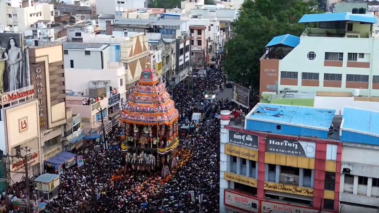 Madurai Chithirai Festival : மதுரையில் சித்திரைத் திருவிழா கோலாகலமாக நடந்து வருகிறது. இதன் 11ஆம் நாளான புதன்கிழமை, பிரம்மாண்டமான தேரோட்டம் நடைபெற்றது. இதில் லட்சக்கணக்கான பக்தர்கள் கலந்துகொண்டனர். இதுபற்றி பேசிய கிருபா என்ற பக்தர், "மதுரையில் சித்திரைத் திருவிழா ரொம்ப பிரம்மாண்டமா நடக்குது. இன்னைக்கு 11-வது நாள் தேரோட்டம். வெளியூர்ல இருந்து ஏகப்பட்ட பேர் வந்திருக்காங்க. சொல்லப்போனா, மதுரை நகரமே இங்க திரண்டு வந்த மாதிரி இருக்கு. நான் சின்ன வயசுல இருந்தே இந்த திருவிழாவுக்கு வந்துட்டு இருக்கேன். போன வருஷத்தை விட இந்த வருஷம் நிறைய பேர் மீனாட்சி அம்மன் வேஷம் போட்டு வந்திருக்காங்க. இதைப் பார்க்கும்போது ரொம்ப சந்தோஷமா இருக்கு" என்றார்.