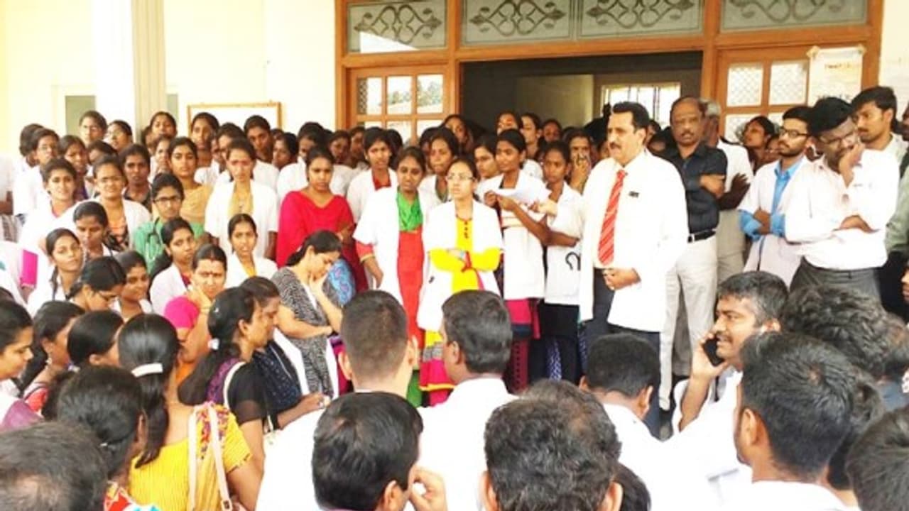 இந்தச் சம்பவத்தைக் கண்டித்து நேற்று திருவண்ணாமலை அரசு மருத்துவக்கல்லூரி மருத்துவமனையில் மருத்துவர்கள், பயிற்சி மருத்துவர்கள் திடீரென வேலை நிறுத்தப் போராட்டத்தில் ஈடுபட்டனர்.