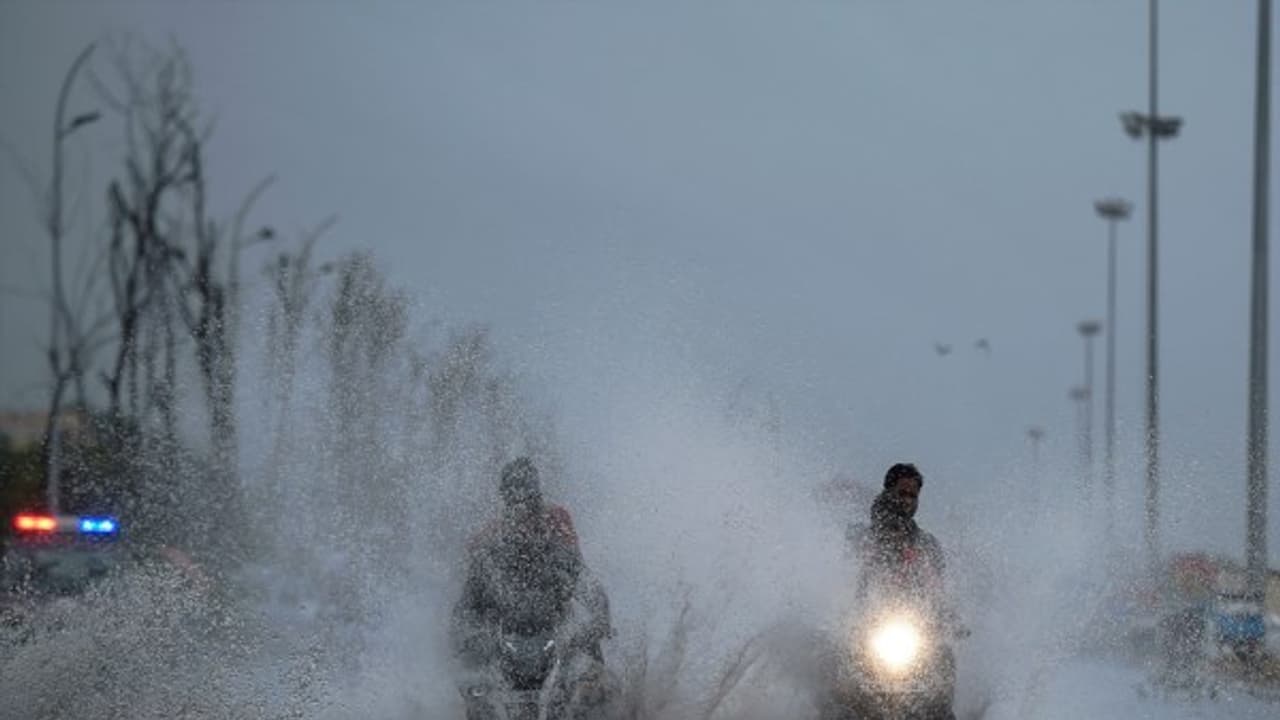 Marina beach sinking in rainwater
