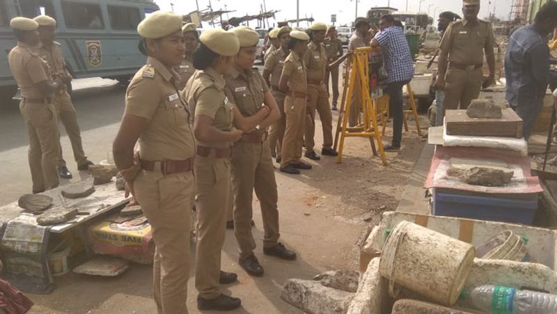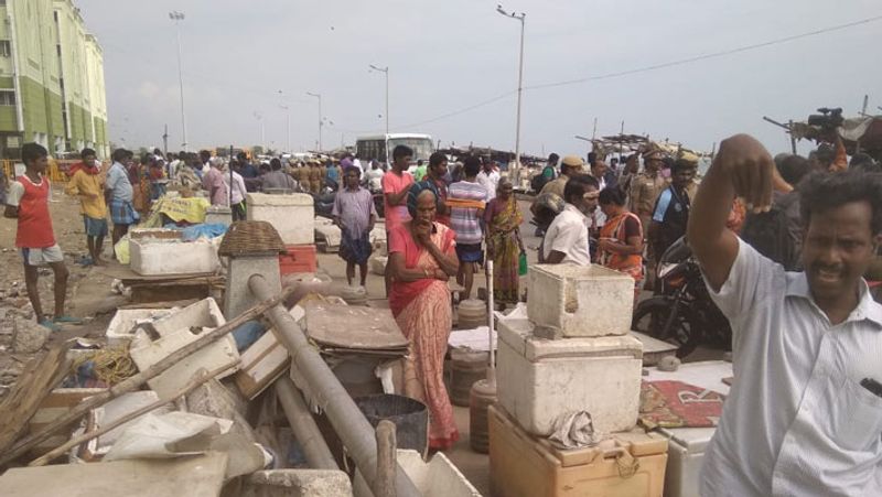 இந்நிலையில் கடைகள் வேறு இடத்திற்கு மாற்றுவதற்கான பணிகள் நடைபெற்று வருகிறது. இதற்கு எதிர்ப்பு தெரிவித்து போலீசாருடன் மீனவர்கள் வாக்குவாதத்தில் ஈடுபட்டனர். பின்னர் 300-க்கும் மேறப்ட்ட பெண்கள் சாலை மறியல் போராடடத்தில் ஈடுபட்டுள்ளதால் அப்பகுதியில் பரபரப்பு நிலவி வருகிறது. அப்பகுதியில் 500-க்கும் மேற்பட்ட போலீசார் குவிக்கப்பட்டுள்ளனர். மேலும் அந்த பகுதிக்கு மக்கள் செல்ல கட்டுப்பாடுகள் விதிக்கப்பட்டுள்ளது.