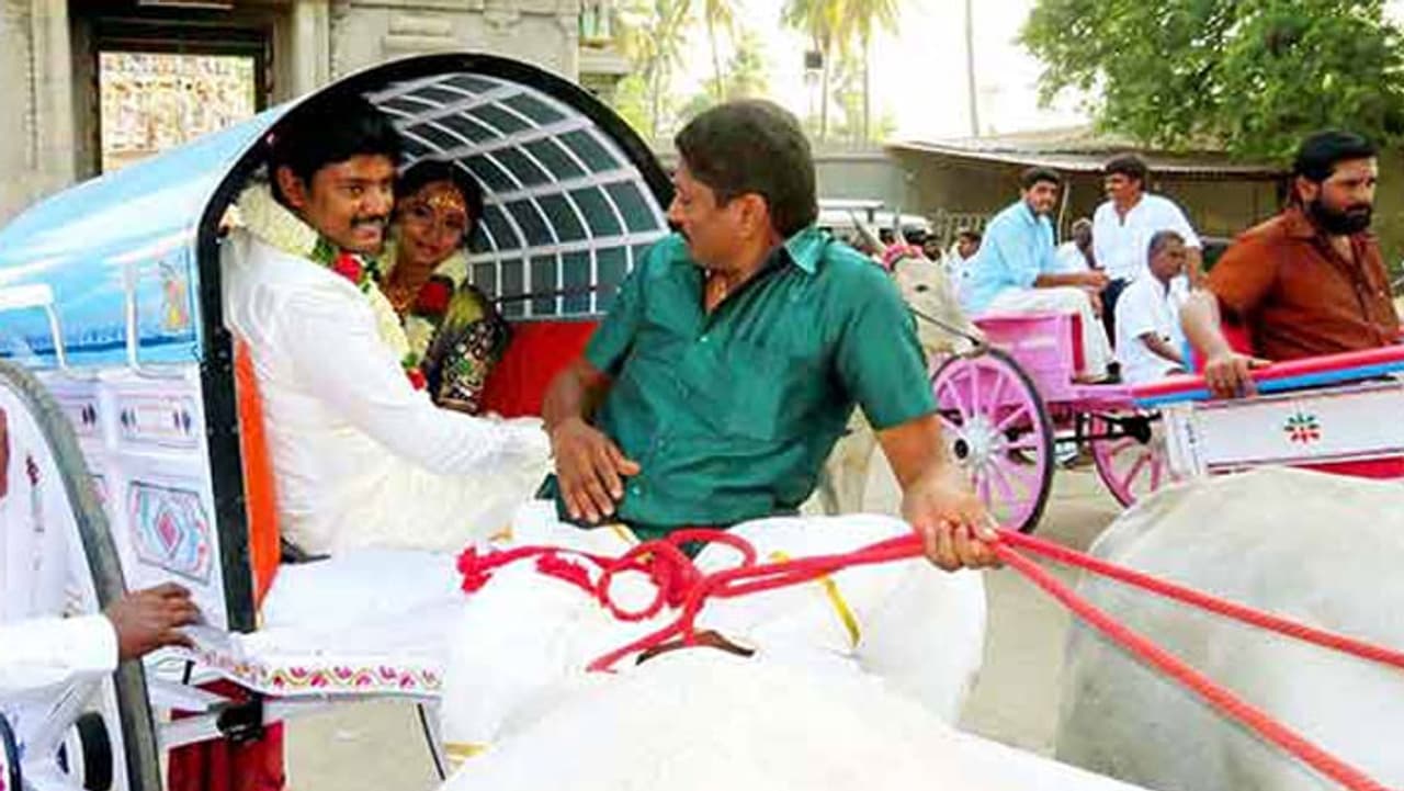 திருமணம் முடிந்ததும் மணமக்களை காரில் அழைத்து செல்வதை வழக்கமாக கொண்டுள்ளனர். ஆனால் கோபியில் நடந்த திருமணத்திலோ மணமக்கள் மாட்டு வண்டியில் ஊர்வலமாக அழைத்து செல்லப்பட்டது ஆச்சரியத்தை ஏற்படுத்தியுள்ளது. ஈரோடு மாவட்டம் கோபி அருகே உள்ள வெள்ளாளபாளையத்தை சேர்ந்தவர் கவிஅரவிந்த்(28). பி.இ. பட்டதாரி ஆவார். படிப்பை முடித்த பிறகு சொந்த கிராமத்தில் விவசாய தொழிலில் ஈடுபட்டு வருகிறார்.