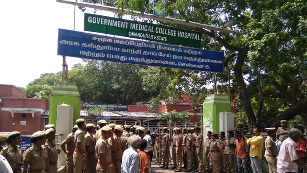 சென்னை விமான நிலையத்தில் கைது செய்யப்பட்ட மூத்த பத்திரிக்கையாளர் நக்கீரன் கோபால் மருத்துவ பரிசோதனைக்காக காவல் நிலையத்திலிருந்து திருவல்லிக்கேணி மருத்துவமனைக்கு அழைத்து செல்லப்படுகிறார்.