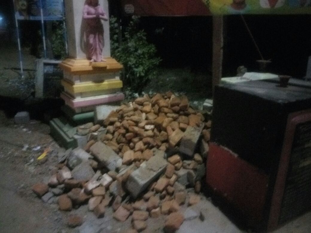 எம்.ஜி.ஆர் மற்றும் ஜெயலலிதா சிலைகள் யாரும் இல்லா அதிகாலை நேரத்தில் போலீசார் இடித்துக் தள்ளியதால் அப்பகுதியில் பரபரப்பு ஏற்பட்டது.