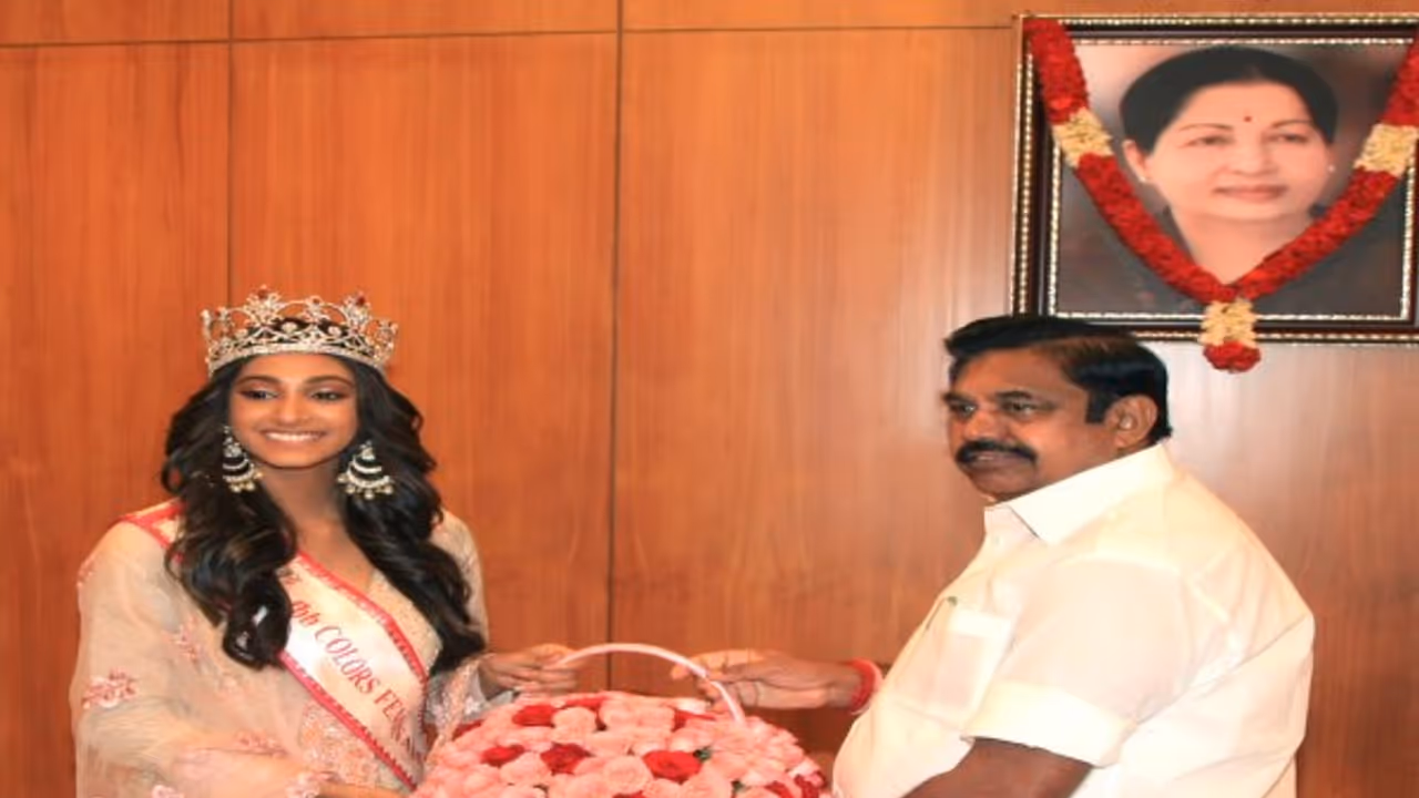 மிஸ் இந்தியாவாக தேர்வு செய்யப்பட்ட அனுக்ருதி தமிழக முதல்வர் எட்பாடியை சந்தித்து வாழ்த்து பெற்றார்.