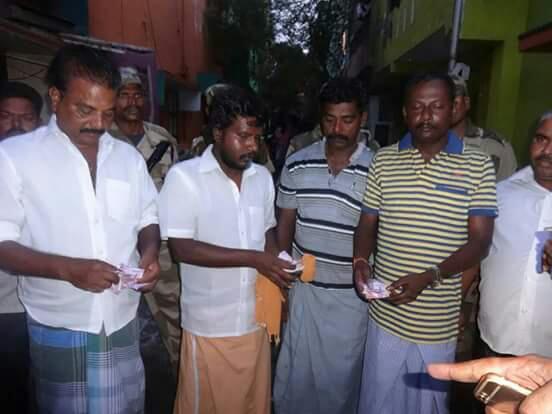 புதுவண்ணார்பேட்டையில் பணம் கொடுக்க முயன்றவர்களை பொதுமக்கள் தரும அடி கொடுத்து காவல் நிலையத்தில் ஒப்படைத்தனர். மேலும் உரிய நடவடிக்கை எடுக்க போலீசார் மறுப்பதாக கூறி அவர்கள் வாக்குவாதத்தில் ஈடுபட்டனர்.