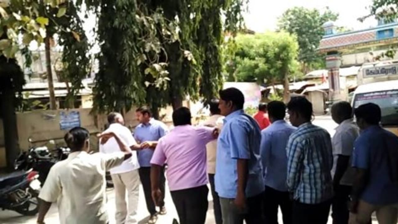 ஒரு கட்டத்தில் வாக்குவாதம் முற்றி, வெளியூர் ஒப்பந்ததாரர்களை, உள்ளூர் ஒப்பந்ததாரர்களும் அவர்களது ஆதரவாளர்களும் சரமாரியாக தாக்கினர். கமிஷனர் அலுவலகத்திலேயே நடந்த அடிதடி, ரோடு வரை சென்றது. வெளியூர் ஒப்பந்ததாரர்களை விரட்டி விரட்டி நகராட்சி அலுவலகத்தின் நுழைவாயில் வரை அடித்தனர்.