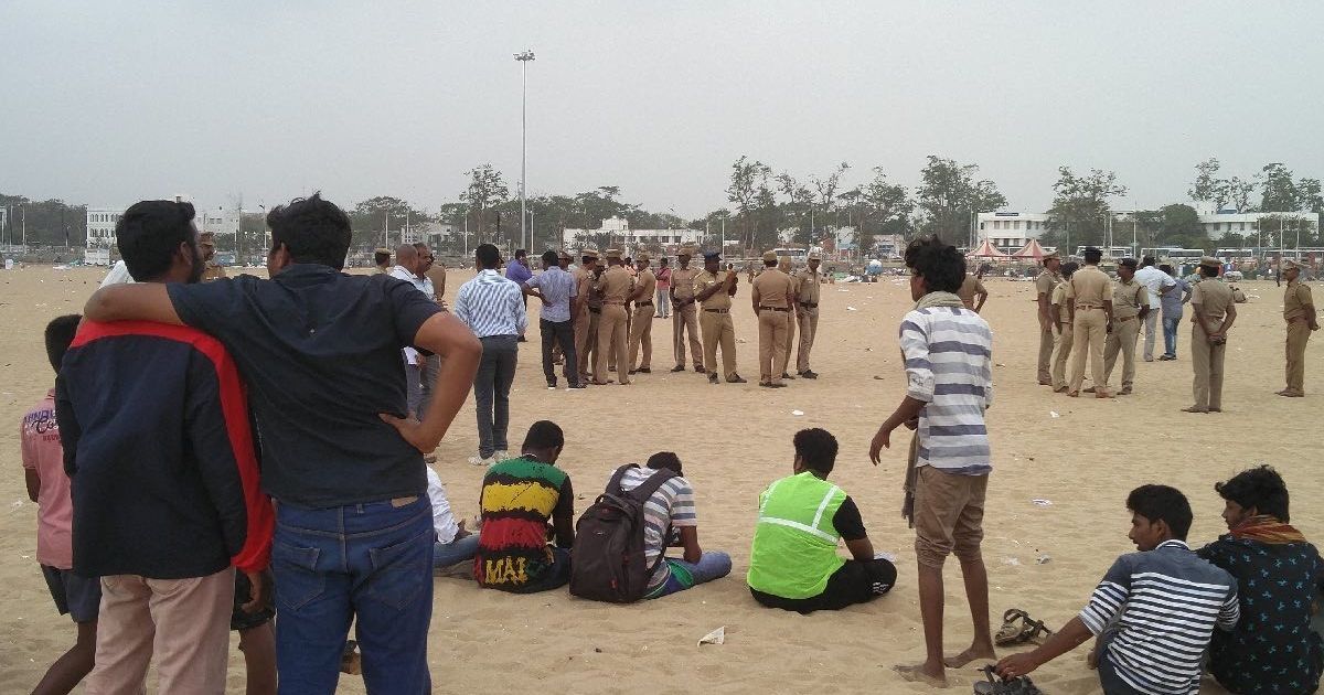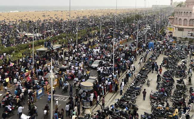 காந்தி சிலை முதல் உழைப்பாளர் சிலை வரை திரண்டிருந்த மாணவர்கள் இளைஞர்கள் கூட்டத்தால் மெரீனா கடற்கரையே பரபரப்பாக இருந்தது.