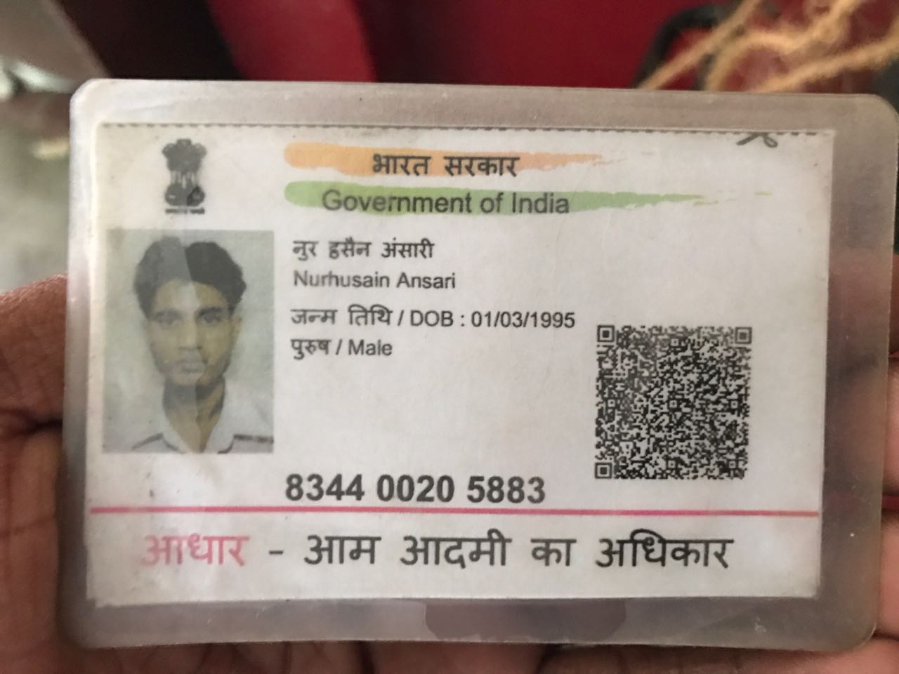 அதில் அவரது பெயர் நூர் ஹுசைன் அன்சாரி என்பதும் அவர் பீகார் மாநிலத்தை சேர்ந்தவர் என்பதும் தெரிய வந்துள்ளது.