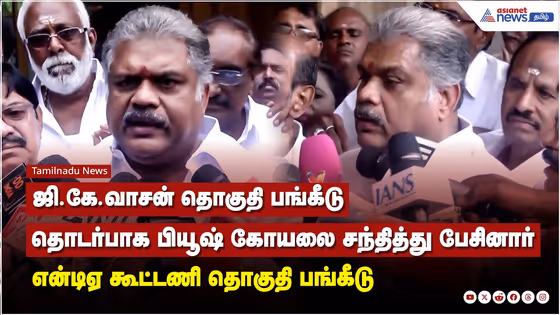 என்டிஏ கூட்டணி தொகுதி பங்கீடு பேச்சுவார்த்தை ஜி.கே.வாசன் பியூஷ் கோயலை சந்தித்து பேசினார்
