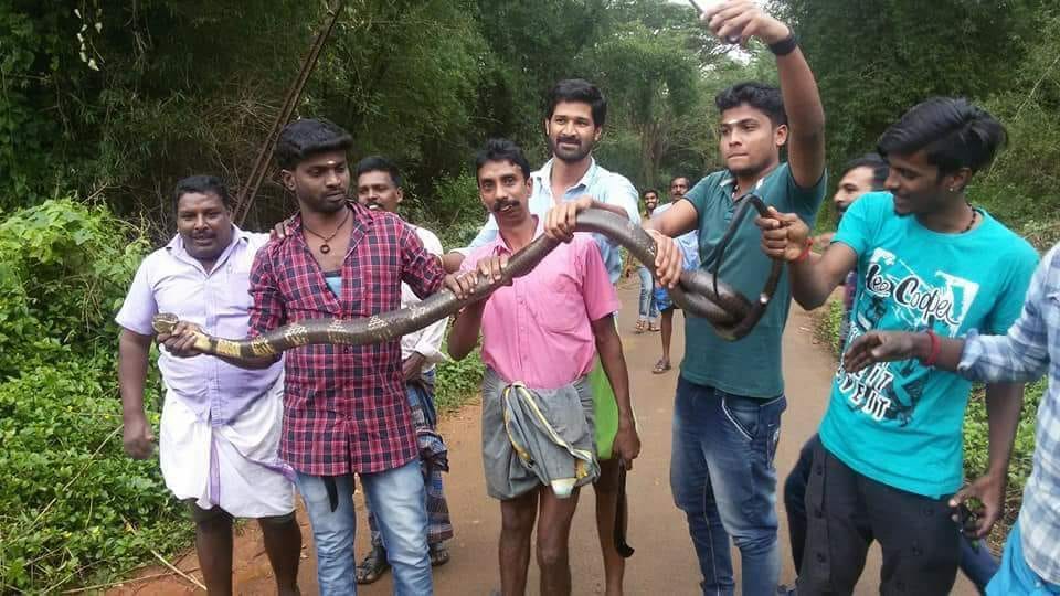 இதனைஒருசமூகபணியாகராஜ்குமார்என்பவர்மேற்க்கொண்டுள்ளார். இந்நிலையில்கடந்த4-ம்தேதிசேரம்பாடிபஜாரைஒட்டியகண்ணம்வயல்செல்லும்சாலையில்மூங்கில்மரத்தில்படுத்திருந்தராஜநாகத்தைஇளைஞர்கள் நிலர் பிடித்துதுன்புறுத்தி, தங்கள்தோளில்போட்டுசெல்பிஎடுத்துசமூகவளைதலங்களில்சிலர்பதிவுசெய்திருந்தனர்.