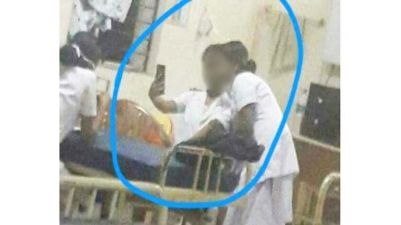 அது... வேலை நேரத்தில் மொபைலில் மூழ்கி கிடக்கும் செவிலியர்களை படம் பிடித்துக் காட்டுகிறது. அரசு மருத்துவமனையில் எடுக்கப்பட்ட படங்கள் என்று அதிலுள்ள விளக்கங்கள் சொல்கின்றன.