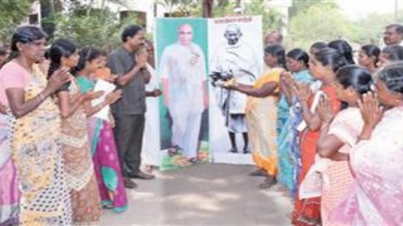 திருநெல்வேலியில் மக்கள், சாராயக் கடையை மூட வேண்டும் என்று காந்தியடிகள் மற்றும் காமராசர் உருவபடத்திற்கு சூடம்காட்டி வழிபாடு நடத்தி வேண்டிக் கொண்டனர்.