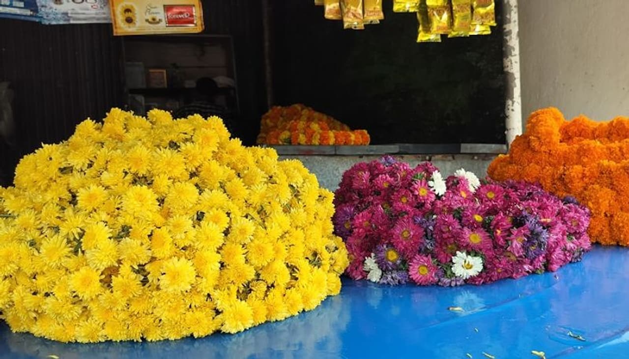 ஆயுத பூஜை மற்றும் விஜயதசமியையொட்டி தமிழகத்தில் பூக்களின் விலை பல மடங்கு அதிகரித்துள்ளது. முக்கியமாக மல்லிகைப் பூ விலை ஒரு கிலோ 1300 ரூபாயை தொட்டுள்ளது.