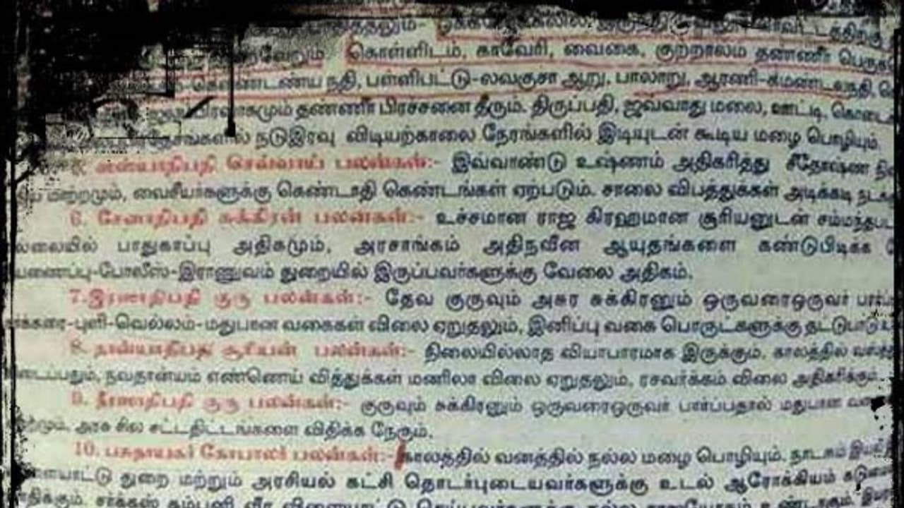 * எட்டுத்திசையிலும் புயல் மழை இருக்குமாம். ஆடி ஆவணி மாதங்களில் வானில் இருந்து ஒளி தோன்றி மறையுமாம்.