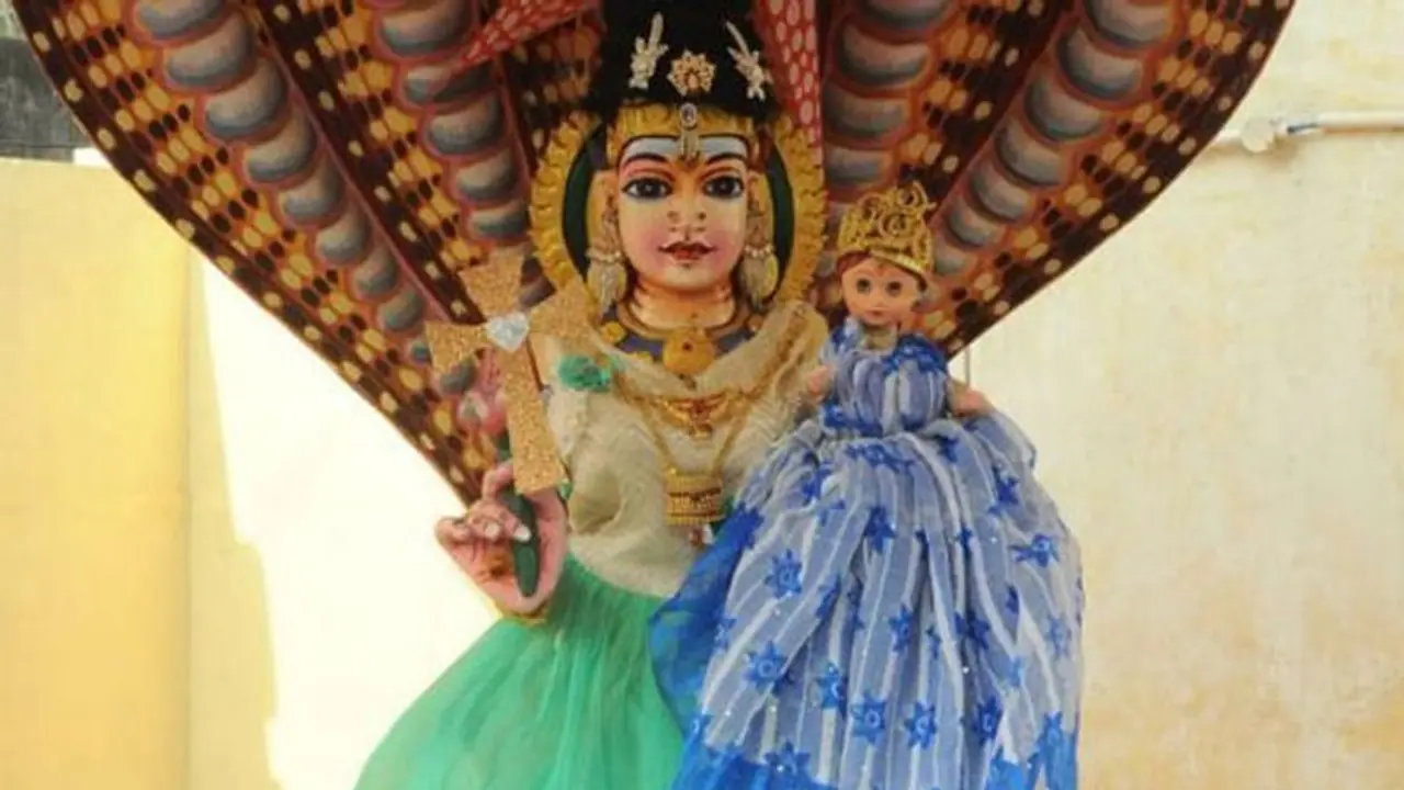இந்த நிலையில் இன்று காலை கோயிலில் உள்ள மூலவர் ஆதிபராசக்தி அம்மனுக்கு மேரிமாதாவைபோல் அலங்காரம் செய்யப்பட்டு இருந்தது. இதை கோயிலுக்கு வந்த பக்தர்கள் இதனை பார்த்து அதிர்ச்சியடைந்தனர். இதை அறிந்ததும, அந்த பகுதியை சேர்ந்த பொது மக்கள் மற்றும் பாஜக, இந்து முன்னணி, இந்து மக்கள் முன்னணி, அய்யப்ப பாதுகாப்பு மன்ற நிர்வாகிகள் மற்றும் ஏராளமானோர் அங்கு திரண்டனர்.