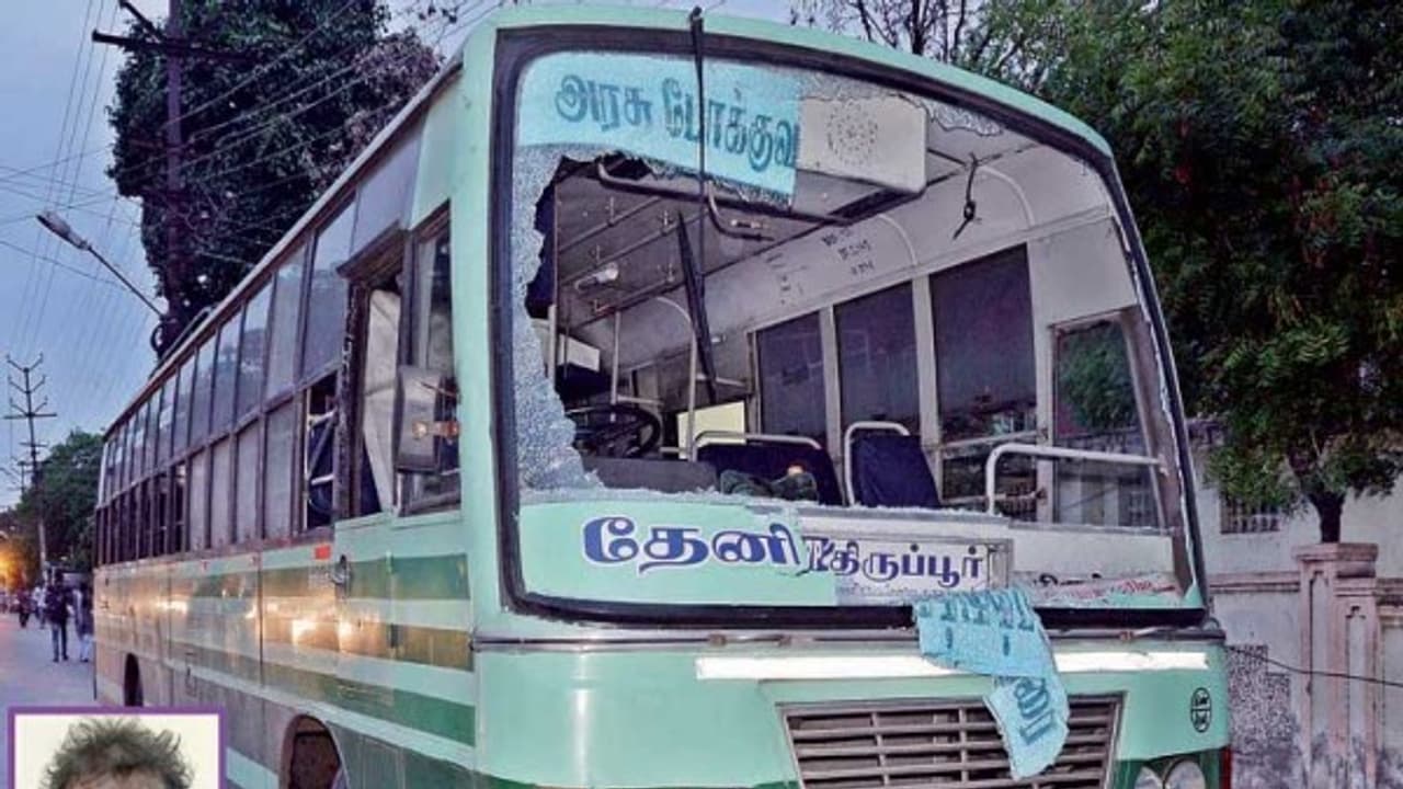 இதனையடுத்து அந்த குடிகாரன் பொதுமக்கள் மீது கற்களை வீசினார். அப்போது அந்த வழியாக தேனி மாவட்டத்தில் இருந்து திருப்பூர் நோக்கி அரசு பேருந்து ஒன்று வந்துள்ளது. ஆத்திரத்தில் இருந்த குடிகாரன் அந்த பேருந்தின் மீதும் கற்களை வீசியுள்ளார்.