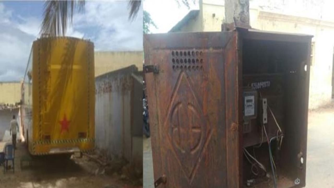 குலதெய்வ கோயிலுக்கு வழிபாடு செய்வதற்காக, நடிகர் தனுஷ், ஏசி வசதியுடன் கூடிய கேரவன் வேன் ஒன்று வந்தது என்றும், கேரவனுக்கு மின்சார இணைப்புக்காக அருகில் இருந்த, பொது மின்கம்பத்தில் இருந்து முறையற்ற வகையில் மின்சாரம் பெற்றதாகவும் தெரிகிறது.