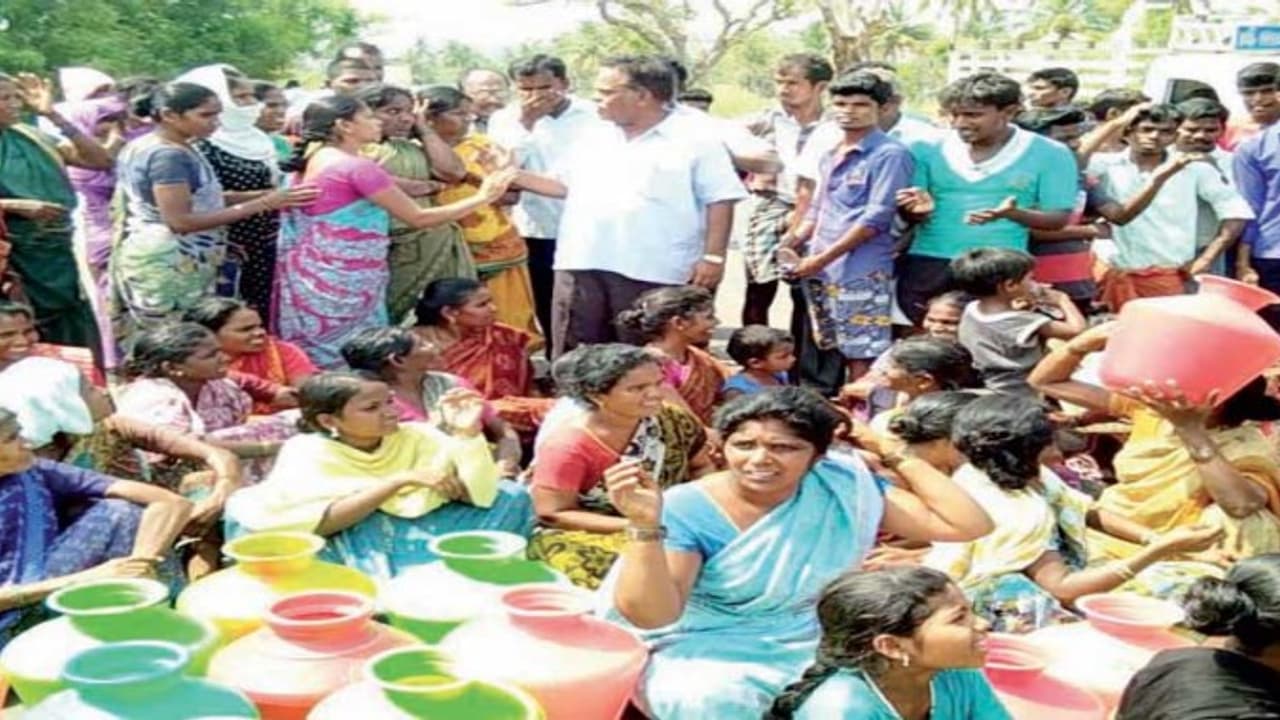 இந்தக் கிராமத்தில் நிலவும் கடும் வறட்சியின் காரணமாக கிணறுகள், ஆழ்துளை குழாய்களில் நீர்மட்டம் குறைந்து விட்டது. இதனால், பெரும் குடிநீர் தட்டுப்பாடு ஏற்பட்டதால் இந்த கிராமத்திற்கு ஒரு மாதத்திற்கும் மேலாக சீராக குடிநீர் விநியோகம் செய்யப்படவில்லை.