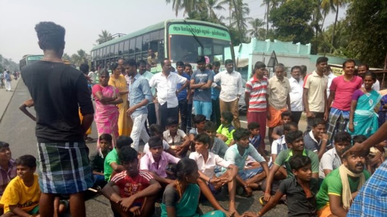 people road roko near karur against district administration and minister vijayabhaskar