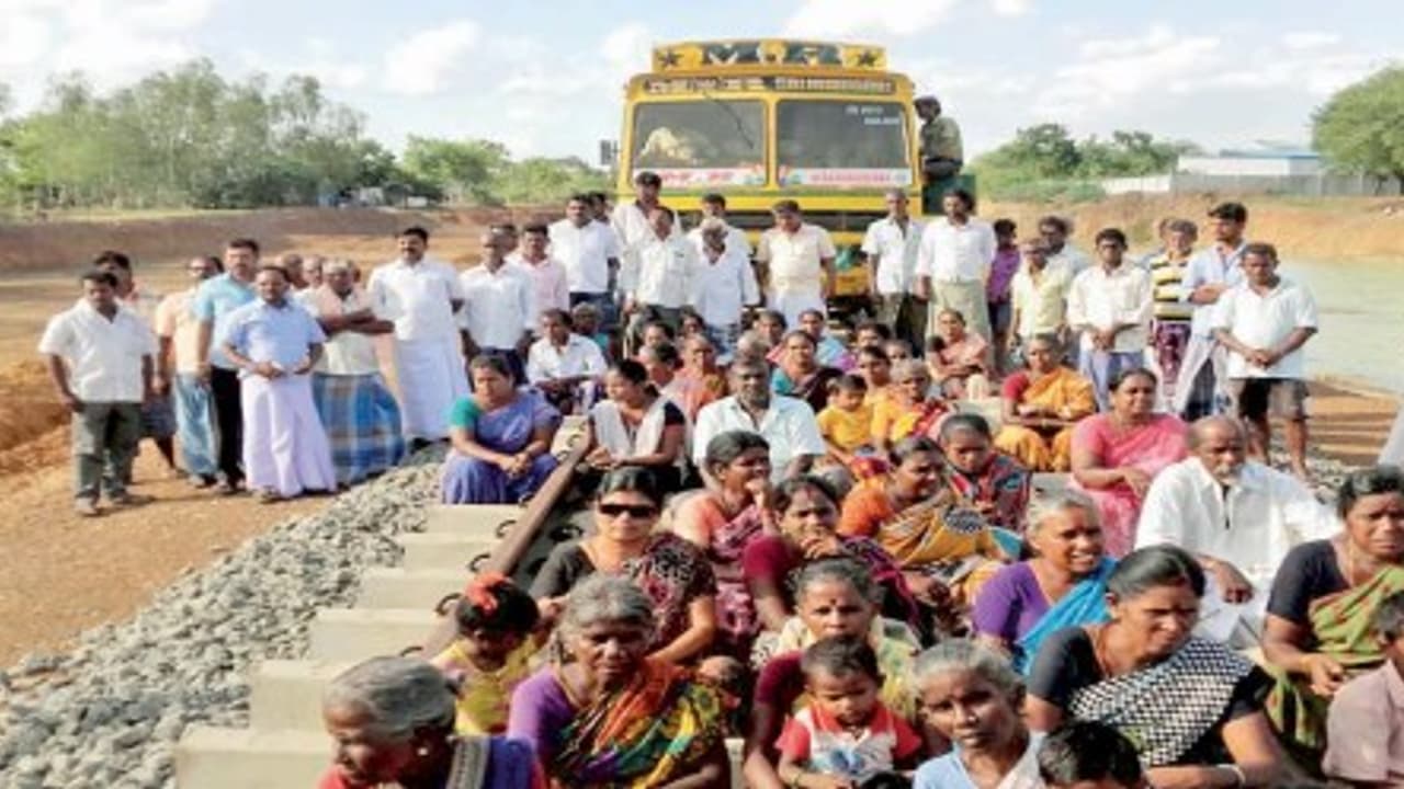 இந்தப் போராட்டத்தின் போது, தண்டவாளத்தில் சல்லிக்கற்கள் ஏற்றி வந்த லாரியையும் அவர்கள் மறித்து போராட்டத்தைத் தொடர்ந்தனர். இதனால் அப்பகுதியில் பரபரப்பு ஏற்பட்டது.