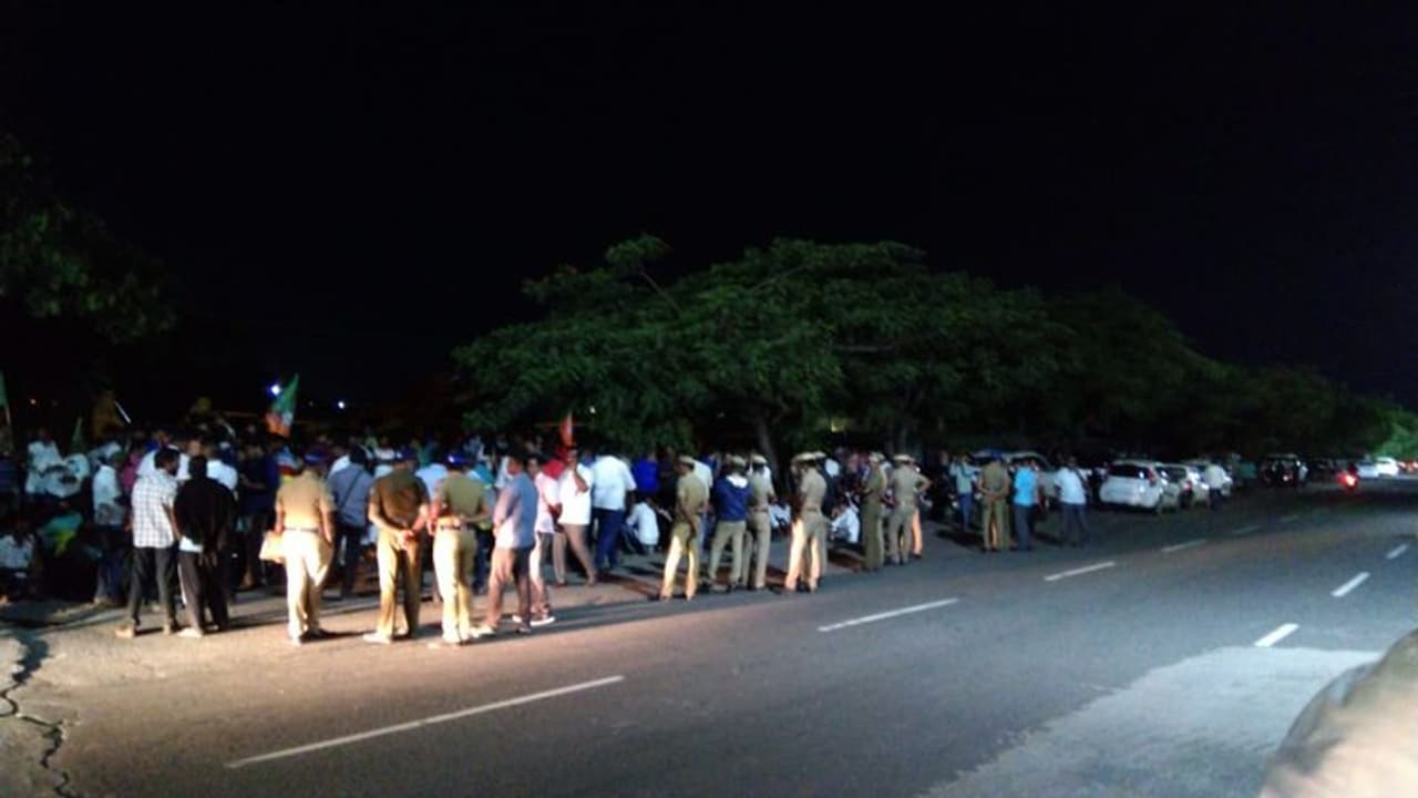 இந்த சூழலில் நேற்று இரவு சுமார் பத்து மணி அளவில் பாஜகவினர் 500க்கும் மேற்பட்டோர் அவிநாசி சாலையில் உள்ள கொடிசியா சந்திப்பு பகுதியில் சாலையோரத்தில் விதி மீறி ஒட்டப்பட்டுள்ள திமுகவினரின் சுவரொட்டிகளை அப்புறப்படுத்துமாறு முழக்கங்களை எழுப்பி போராட்டத்தில் ஈடுபட்டனர். ஒரு மணி நேரத்திற்கும் மேலாக அவர்கள் போராட்டத்தில் ஈடுபட்டும் எவ்வித நடவடிக்கையும் மேற்கொள்ளாத காவல்துறையினர், தூண்களில் ஒட்டப்பட்டிருந்த திமுகவினரின் போஸ்டர்களுக்கு பாதுகாப்பு அளித்ததால் ஆத்திரம் அடைந்த பாஜகவினர் நள்ளிரவு சுமார் 11:30 மணி அளவில் அப்பகுதியில் உள்ள சுமார் 7 தூண்களில் ஒட்டப்பட்டிருந்த திமுகவின் சுவரொட்டிகளை பாஜகவினர் கிழித்தனர். அப்போது காவல்துறையினர் அவர்களை தடுப்புகளை கொண்டு தடுக்கவே இரு தரப்பினரிடையே கைகலப்பு உருவானது. இதைத் தொடர்ந்து காவல்துறையினர் போராட்டத்தில் ஈடுபட்ட பாஜகவினரை தரதரவென இழுத்தும் குண்டுகட்டாக தூக்கியும் கைது செய்தனர். இதனிடையே போராட்டம் நடந்து கொண்டிருந்த கொடிசியா சந்திப்பிலிருந்து சுமார் 100 மீட்டர் தொலைவில் கொடிசியா மைதானத்திற்குள் திமுகவினர் நூற்றுக்கும் மேற்பட்டோர் திரண்டதால் பரபரப்பான சூழல் உருவானது.