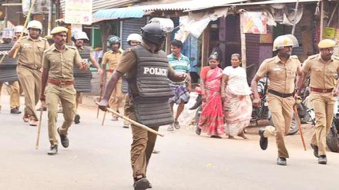 police lathi charge on women protestors in vellore