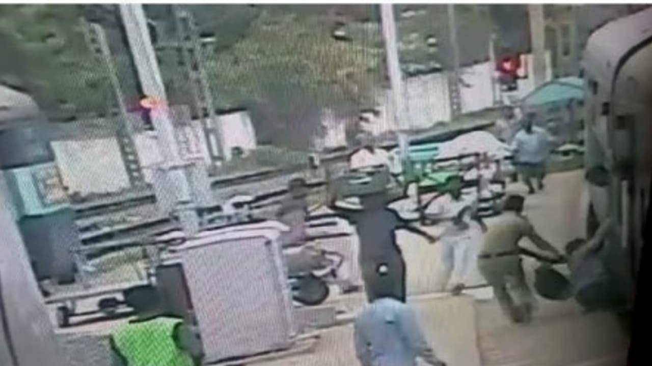 ஓடும் ரயிலில் ஏற முயன்றபோது தவறி விழுந்த வடமாநில இளைஞரை, ரயில்வே போலீசார் ஒருவர் சாமர்த்தியமாக காப்பாற்றிய சம்பவம் சென்னை எழும்பூர் ரயில் நிலையத்தில் நடந்துள்ளது.