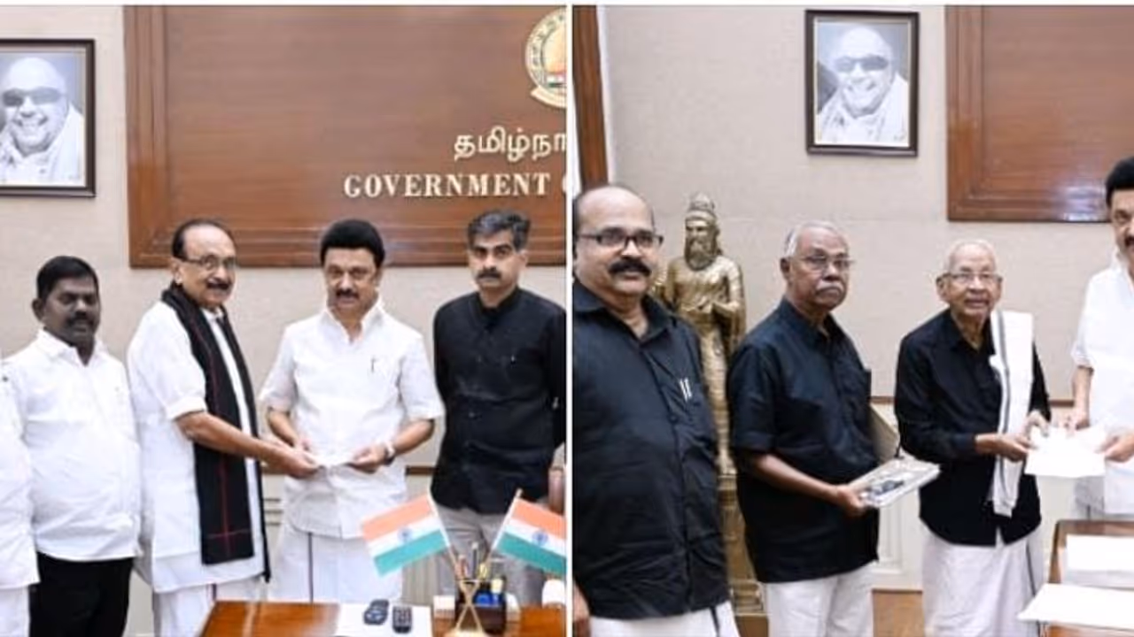 இந்தநிலையில் தமிழக முதலமைச்சர் மு.க.ஸ்டாலினை சந்தித்து அரசியல் தலைவர்கள், தனியார் நிறுவனங்கள், ஐஏஎஸ், ஐபிஎஸ் அதிகாரிகள் நிதி உதவி அளித்து வருகின்றனர். அந்த வகையில், மிக்ஜாம் புயல் நிவாரண நிதியாக மதிமுக சார்பில் 10 லட்சத்து 20 ஆயிரம் ரூபாய்க்கான காசோலையை தமிழ்நாடு முதலமைச்சர் மு.க ஸ்டாலினை சந்தித்து மதிமுக பொதுச்செயலாளர் வைகோ வழங்கினார்.