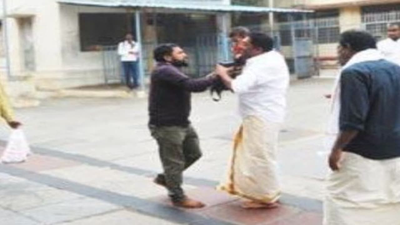 அதற்கு, “நான் சாமி கும்பிட வந்திருக்கிறேன். ஜல்லிக்கட்டு பற்றி கருத்து சொல்ல முடியாது. கோவிலுக்கு வந்த என்னை ஏன் தொல்லை செய்கிறீர்கள்" என கூறிய அவர், திடீரென கேள்வி கேட்ட நிருபரை தாக்கினார். மேலும் அவர், நிருபரிடம் இருந்த கேமராவை பறித்து அதிலிருந்த வீடியோ பதிவுகளை அழிக்க முயன்றார்.