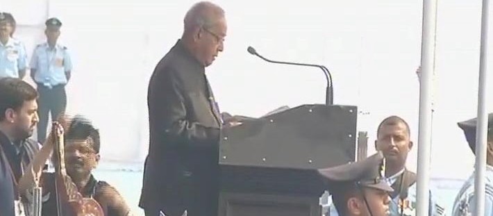 இதனைத் தொடர்ந்து உரையாற்றிய குடியரசுத் தலைவர் பிரணாப் முகர்ஜி இந்தியா ஒரு வலிமையான நாடாக உருவாகியுள்ளது என்றும் அதற்கு விமானப் படையின் பங்கு அளப்பரியது என்றும் பாராட்டினார்.